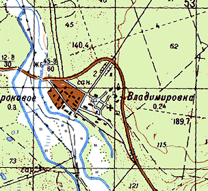 Свою усадьбу, построенную над рекой Мерчик, сахарозаводчик Иван Харитоненко назвал в честь внучки. Сейчас это село Владимировка Краснокутского района. До настоящего времени сохранились спроектированная А. Щусевым церквушка и отдельные строения усадьбы: ворота, флигели, водонапорная башня,... Главное здание не сохранилось. Что-то сохранилось от ландшафтного парка, но он слишком запущен, чтобы можно было полностью оценить его эстетическое значение. Количество же сохранившихся видов растений смогут оценить только те, кто в этом разбирается: подписей под деревьями нет, есть только большая табличка в центре парка с общей его характеристикой. Карта окрестностей Натальевки (село Владимировка). Примерной границей Натальевского парка является изгиб асфальтовой дороги, хорошо видный на карте. Статья о Натальевке из журнала "Наука и религия", №7, 1991 г. |